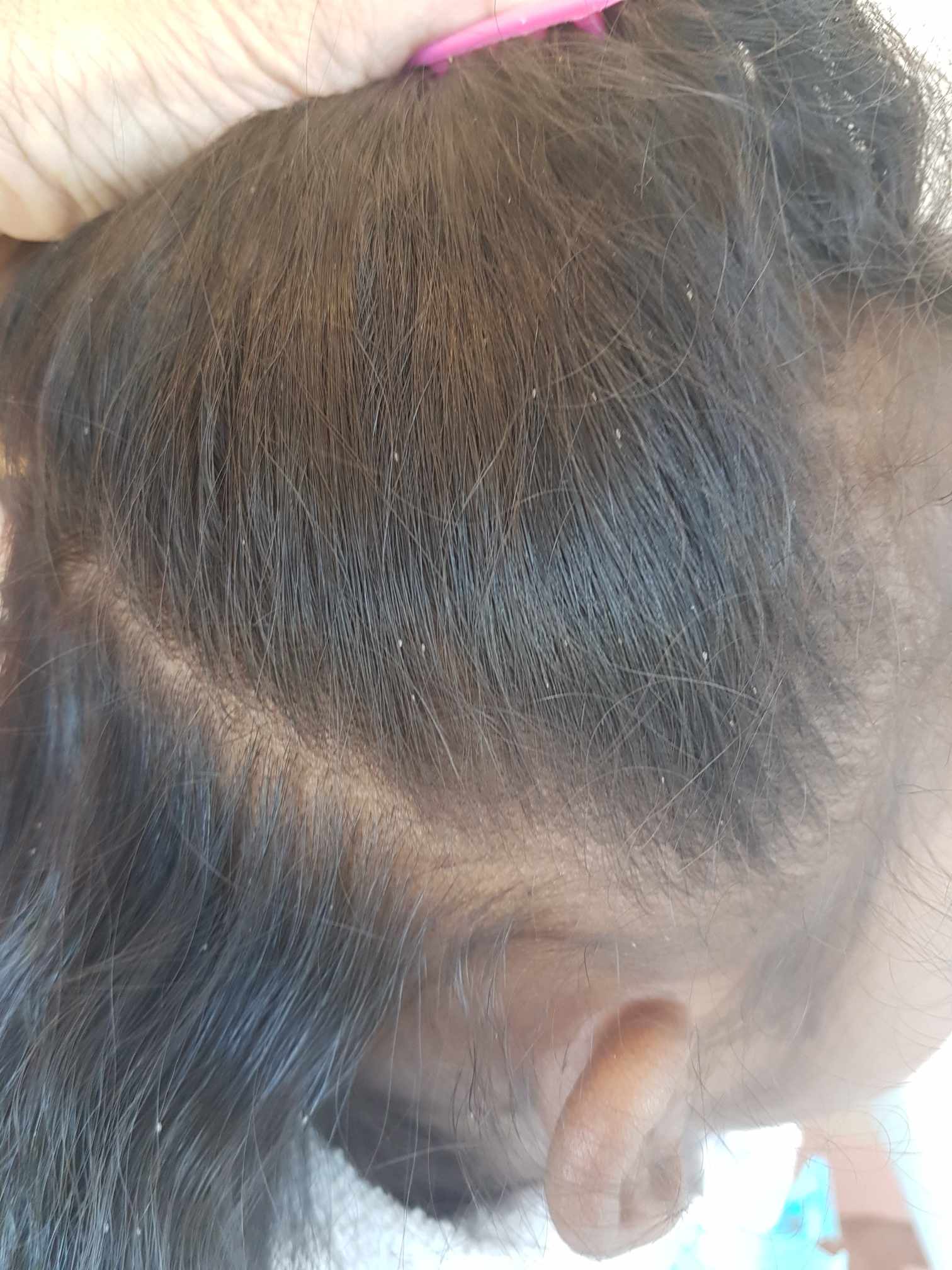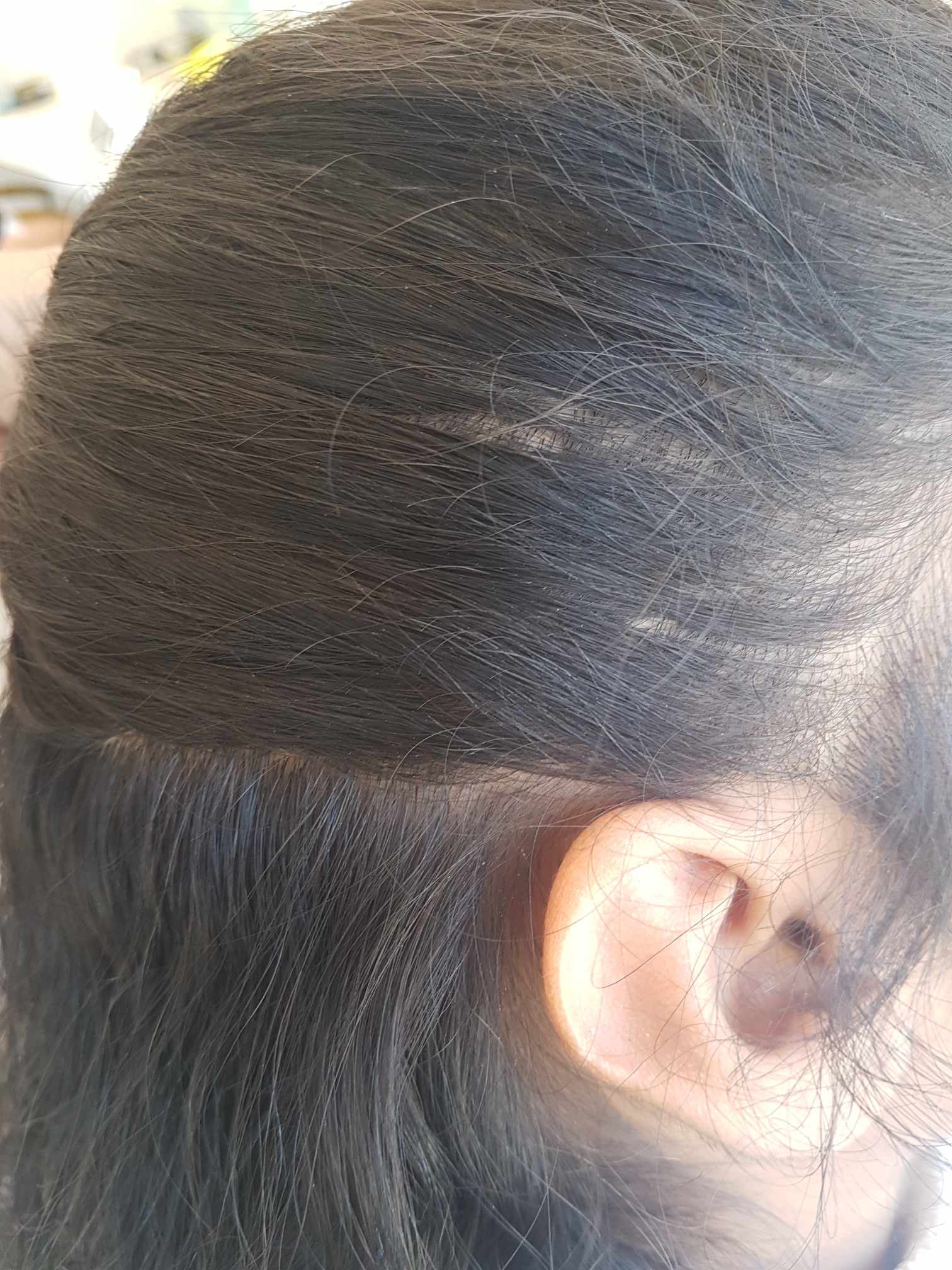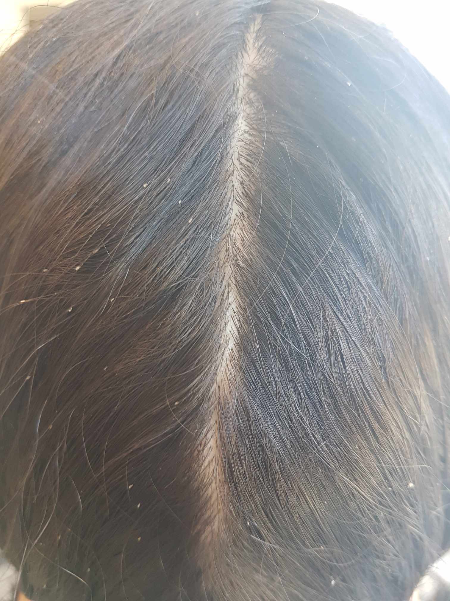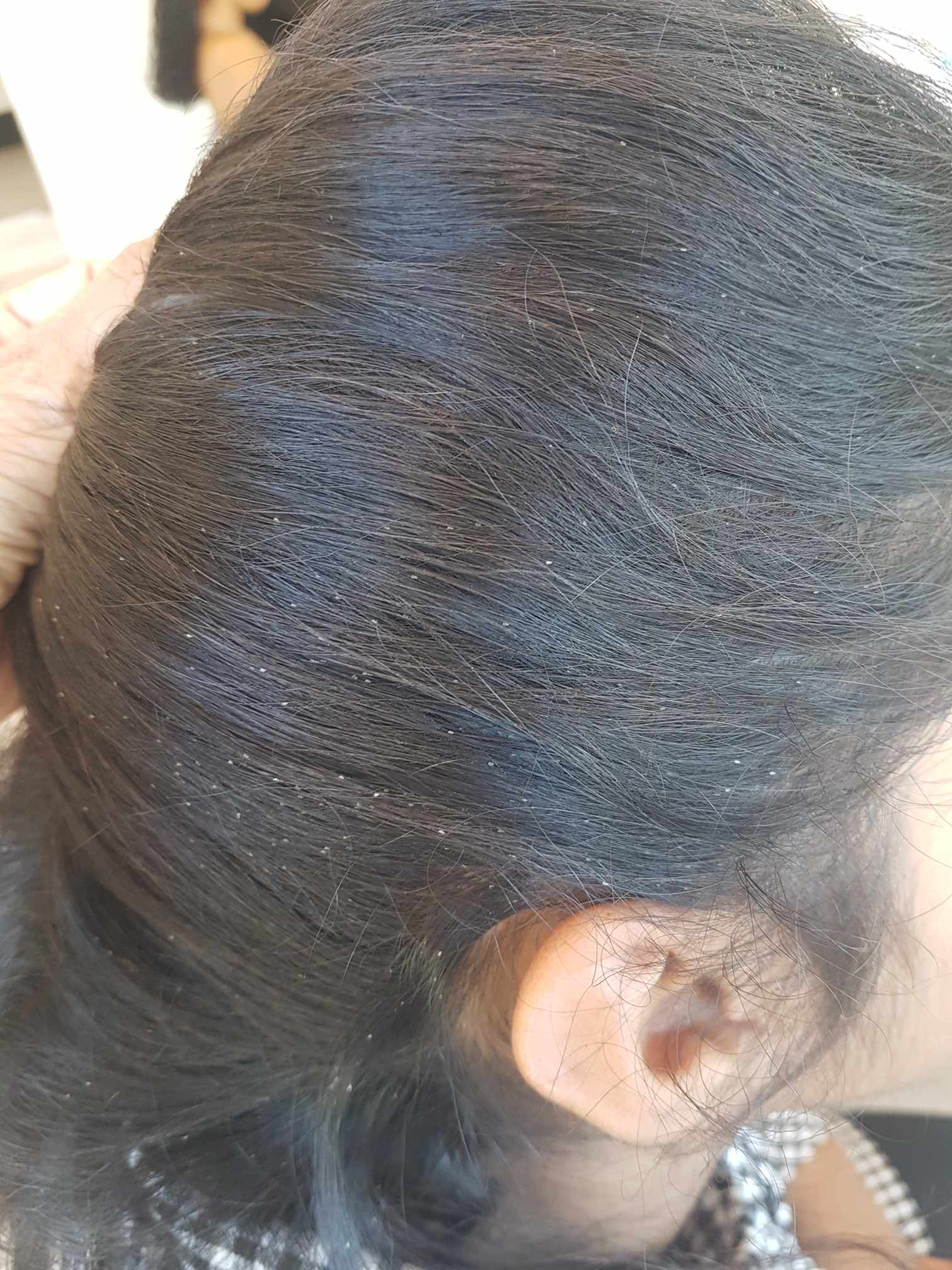 Application de notre soin décolleur de lentes. Objectif : faciliter le passage du peigne fin